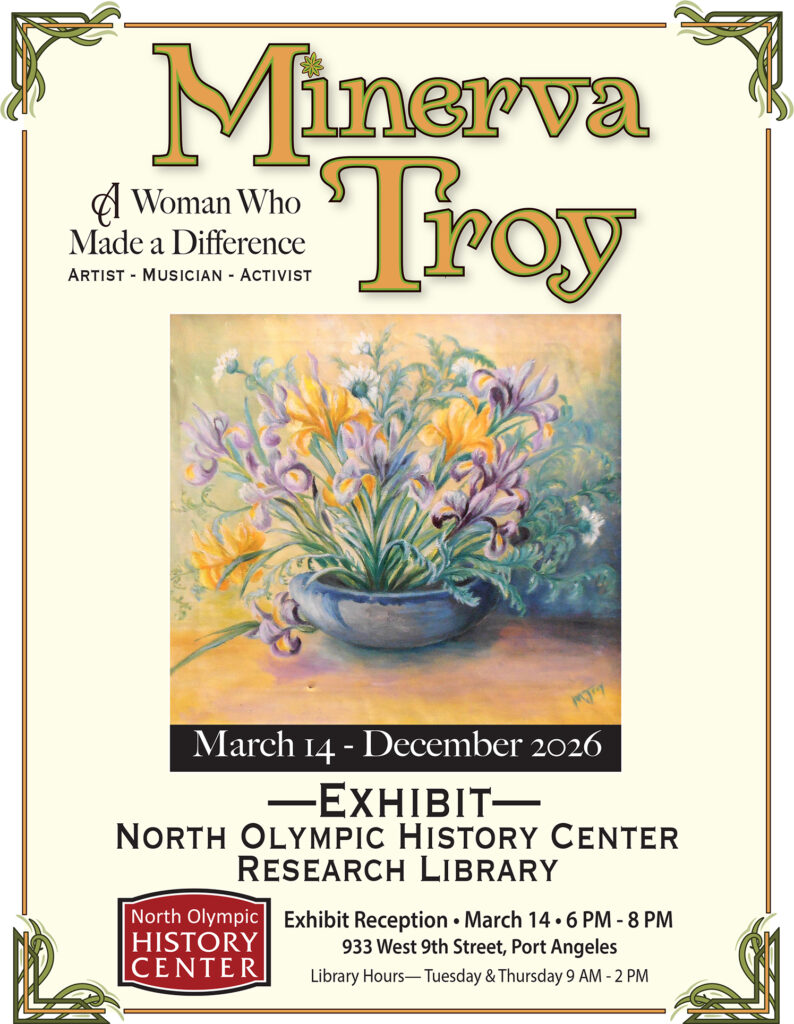 Minerva E. Troy has left an indelible mark on Port Angeles. Her guidance as cultural leader from the late 1880s until her death in 1960 was pronounced. She was a singer, a musician, teacher, entrepreneur, newspaper editor, teacher, and adventurer.